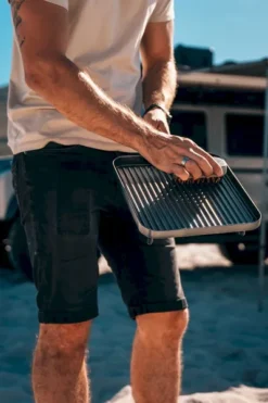 Met de CADAC 2-Cook 3 Pro Deluxe gebruik je de twee brander los van elkaar. Zo kook je bijvoorbeeld op de ene het water voor jouw pasta en grill je daarnaast lekker wat groente. De twee pandragers vervang je in een handomdraai met de bakplaat en grilplaat. Deze twee platen van 25 bij 25 cm zijn voorzien van de GreenGrill keramische coating. De handvaten voor deze platen vind je in de hoes, onder het handvat. In de zijkanten van deze hoes zitten ook twee windvangers, zodat je ook met zijwind de vlam aanhoudt. Door de rubberen antislipvoetjes blijft het geheel goed staan tijdens het koken.