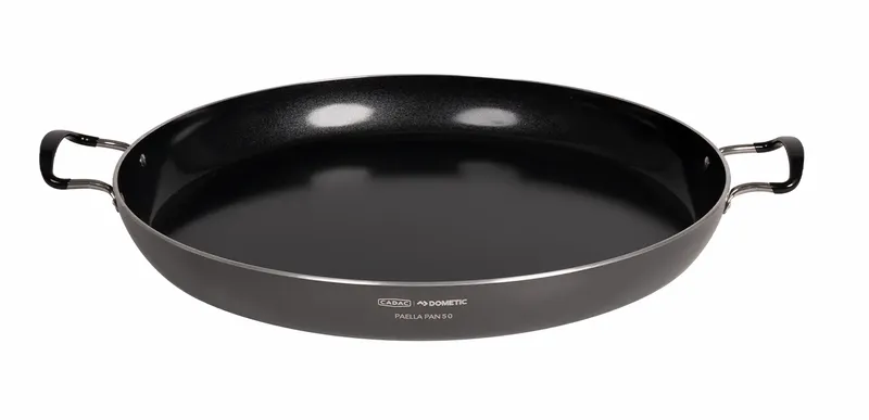 Op vakantie heerlijk ‘n eenpansgerechten voor maximaal 8 personen bereiden? Dan is de CADAC Paella Pan 50 wat je nodig hebt. De pan heeft een kookoppervlak van ø 49 cm, een hoogte van 4 cm en weegt 3 kg. De GreenGrill keramische coating zorgt ervoor dat jouw maaltijden niet aanbakken en je gezonder kookt. De roestvrijstalen handgrepen laten de pan er voor lange tijd als nieuw uitzien. Wist je dat je deze pan ook heel handig als deksel gebruikt? Ideaal!