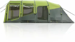Het stevig getapete tentdoek met een waterkolom van 4000 zorgt ervoor dat je zelfs bij de zwaarste regenbui wakker wordt in een droge slaapzak. Het PE grondzeil met opstaande randen houdt vocht buiten en maakt het voor beestjes erg lastig om je tent binnen te dringen. De binnentent is van ademend polyester en gaas wat zorgt voor extra ventilatie. Het fijne gaas houd zelfs de kleinste beestjes buiten jouw slaapcabine. Zo wordt je in ieder geval niet wakker met een bungelende spin boven je hoofd. Voor extra veiligheid van jouw gezin is het buitendoek gemaakt van een PU gecoat en brandvertragend polyester.