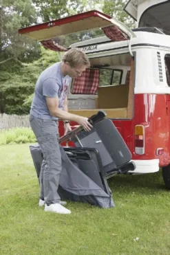 Met deze Crespo draagtas wordt het vervoeren en opbergen van jouw stoelen of tafel een fluitje van ‘n cent! De luxe draagtas is gemaakt van hoogwaardig polyester waardoor je jarenlang plezier hebt van dit handige accessoire. De ritssluiting en de sterke spanbanden zorgen voor extra gebruiksvriendelijkheid zodat je je Crespo tafel of stoelen probleemloos mee kunt nemen op al je avonturen. Naast het beter kunnen vervoeren van je campingmeubels, zorgt de Crespo draagtas ook voor betere bescherming tegen beschadigingen. Zo houd je je ze langer netjes en ben je verzekerd van vele zonnige kampeervakanties samen!