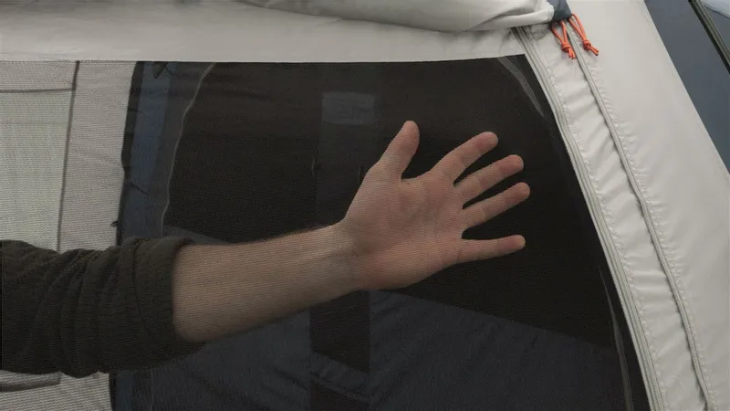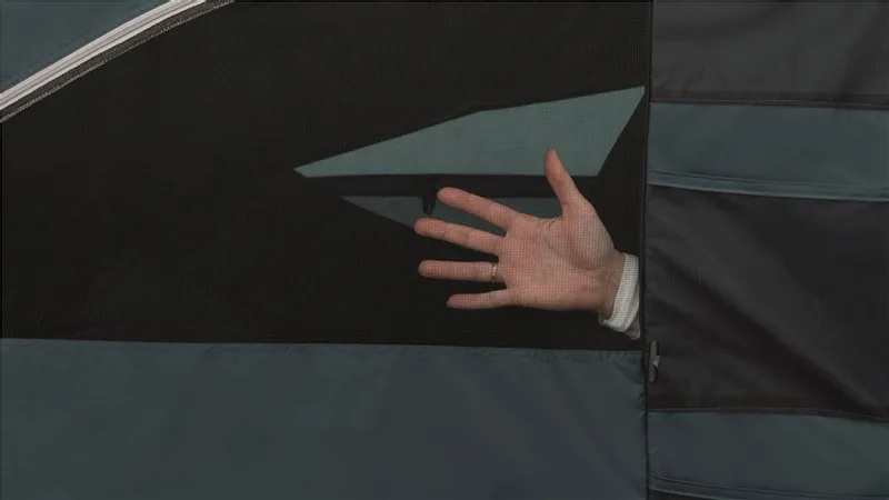 Wanneer je met meerdere mensen in een tent slaapt is goede ventilatie noodzakelijk. De ramen en redelijke staruimte zorgen voor een ruimtelijk gevoel in de tent. Verschillende ramen en ventilatieopeningen zijn voorzien van een gaas met kleine diameter. Hierdoor komt frisse lucht binnen, maar blijven vervelende insecten als muggen en spinnen lekker buiten. De vensters aan de voorkant en zijkanten van de tent kun je afsluiten of vrijmaken met de oprolbare gordijnen.Zo bepaal je lekker zelf hoeveel licht en zon er binnenkomt!