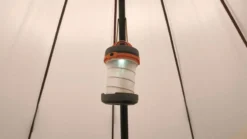 Wanneer je met 8 mensen samen een nacht in een tent doorbrengt is goede ventilatie een vereiste. De gaasdeur zorgt ervoor dat het lekker door kan tochten ‘s nachts of overdag. Je ritst deze gaasdeur ook weer heel makkelijk aan het grondzeil voor een naadloze afdichting. Daarnaast zorgen de drie lage ventilatieopeningen en een bedekte dakopening voor een goede luchtstroom door de tent. Zo hoef je niet wakker te worden van een eigenaardige geurtjes.