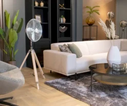 De ventilator heeft een kopergewikkelde motor die zorgt voor een langere levensduur. De statiefventilator heeft een geluidsniveau van maximaal 66 dB en is daarmee nagenoeg geruisloos. Daarnaast zorgt de houten driepoot met antislipvoetjes ervoor dat de ventilator stevig op de grond staat en niet omver geblazen wordt, toch handig!